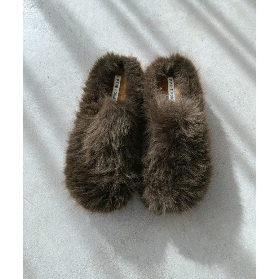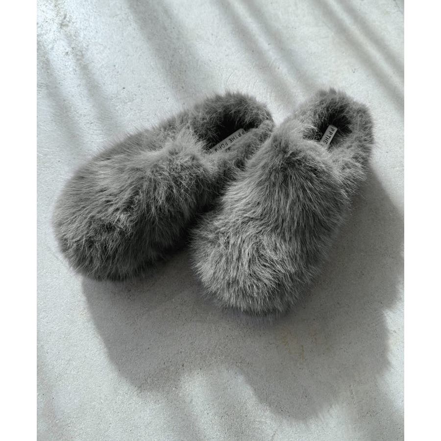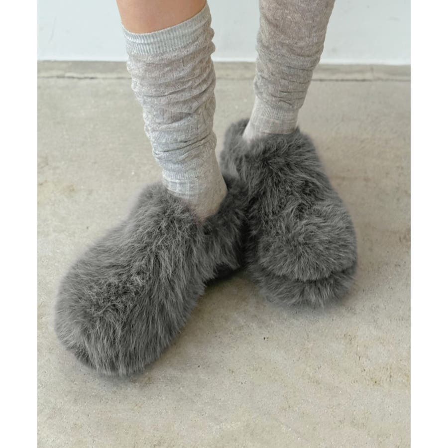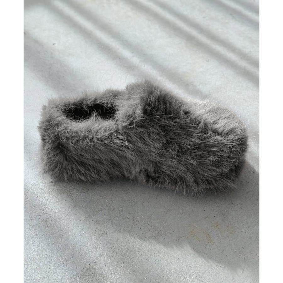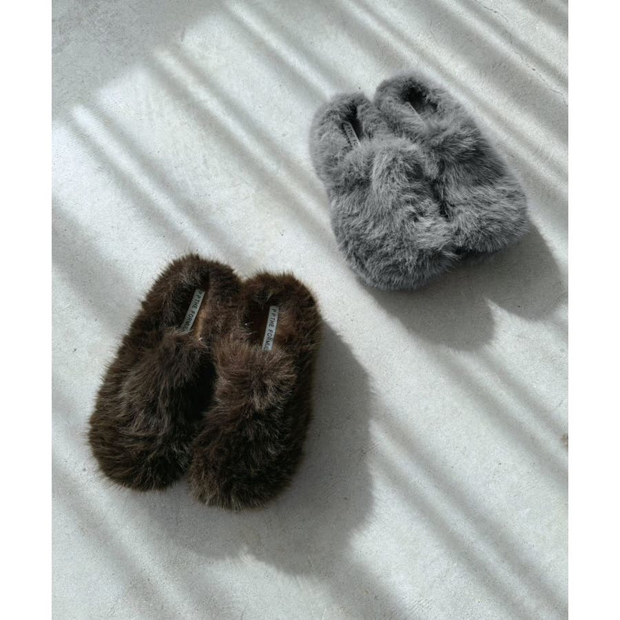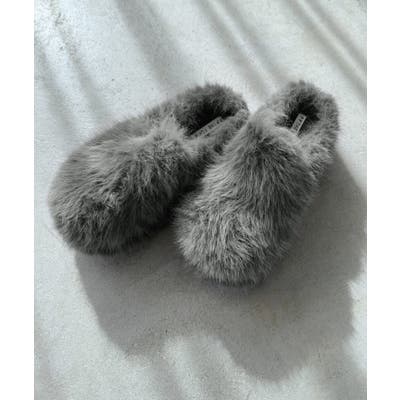 ・毛足長めのフェイクファーがキュートなサボサンダル。