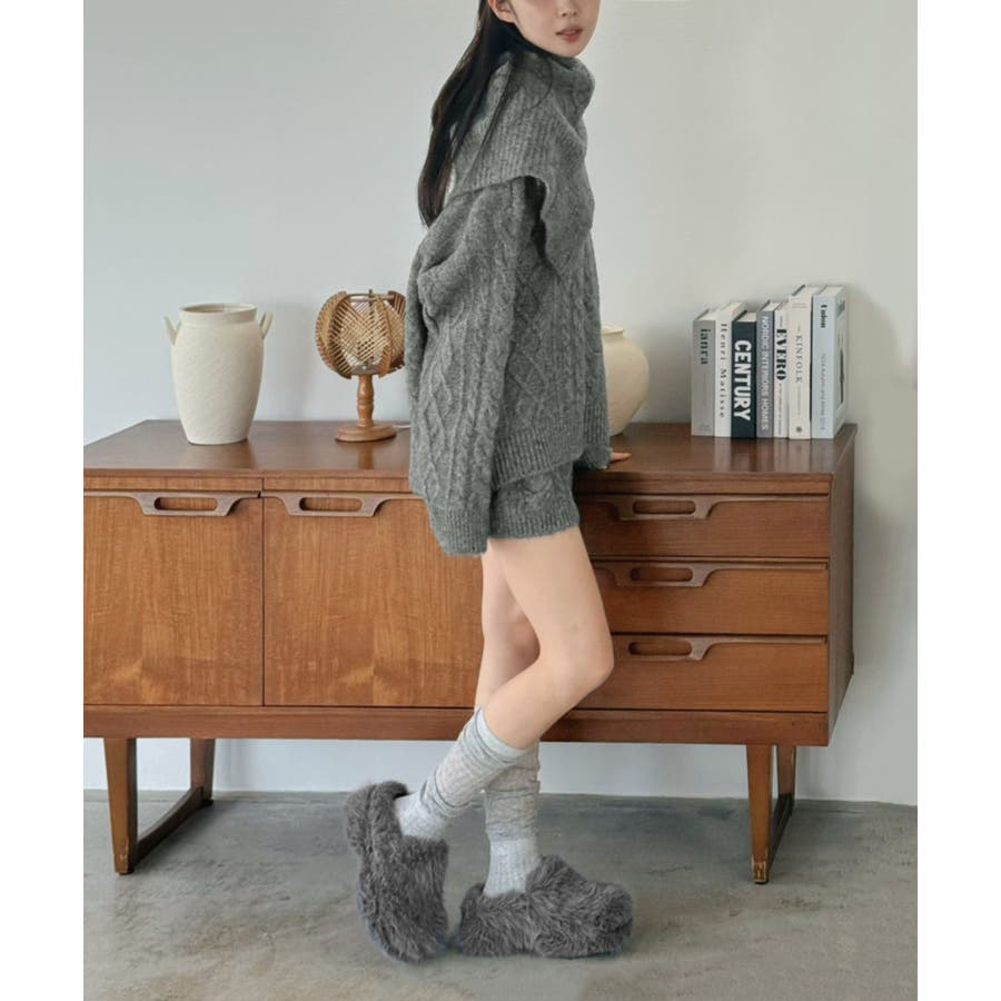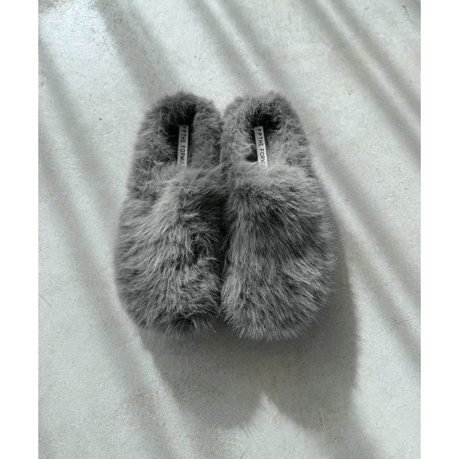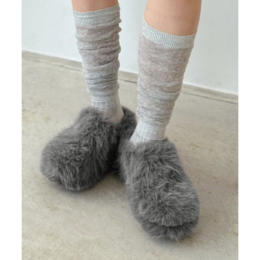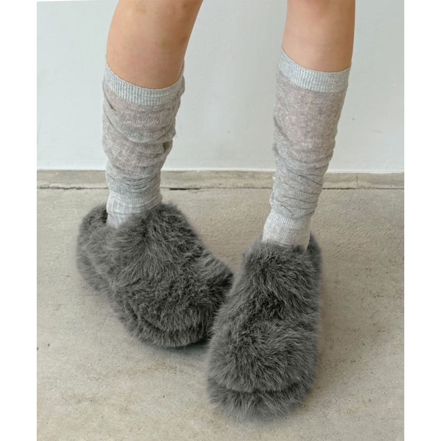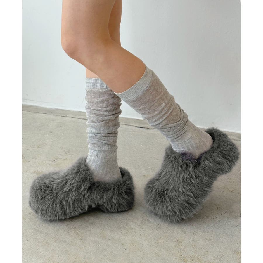 ・毛足長めのフェイクファーがキュートなサボサンダル。