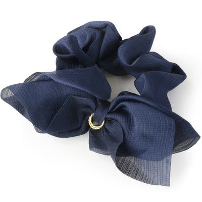 ラメ感と透け感がある肌なじみの良い生地のリボンモチーフシュシュです。