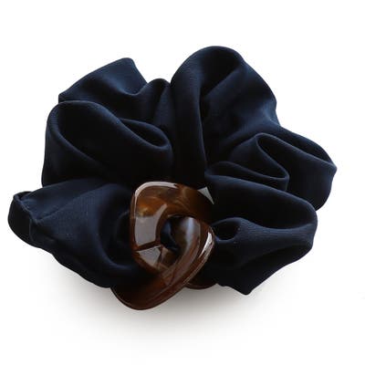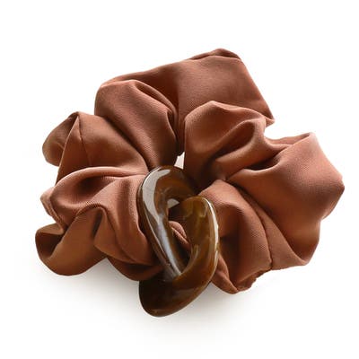 べっ甲のオーバルモチーフのチャームが印象的なチャーム付きシュシュ。