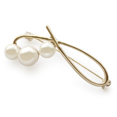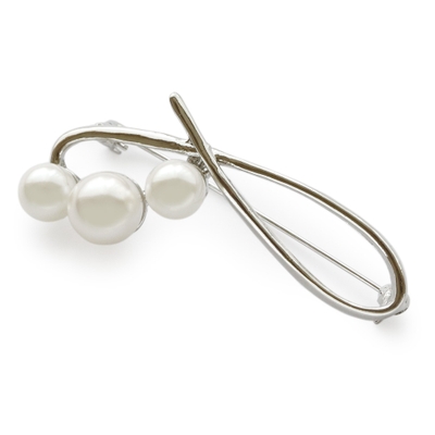 カールしたメタルベースに艶やかなパールを合わせた上品なブローチです。
