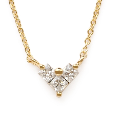 スクエア型のキュービックジルコニアが煌めくハートモチーフのネックレスです。