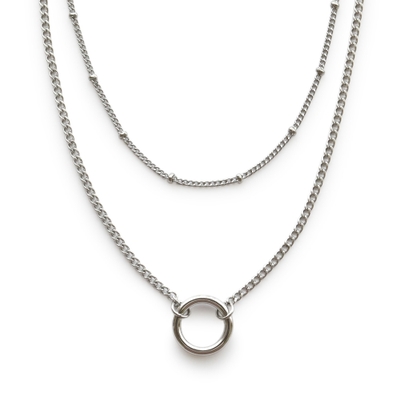 2種類のチェーンを合わせ、トップのリングモチーフがポイントになった大人なデザイン!