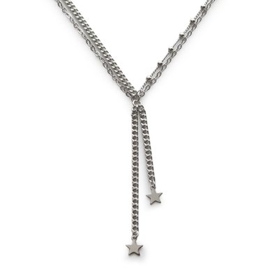 センターチェーンのトップには小さな星のプレートチャームが揺れ、さりげなく胸元を彩ります。