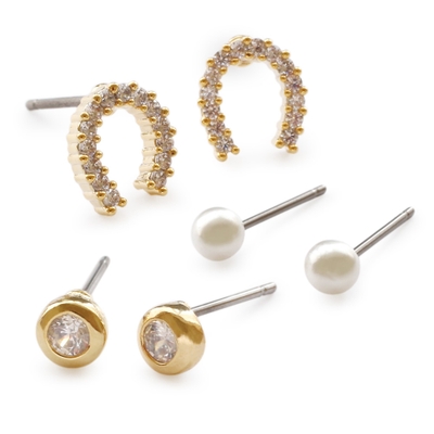 一粒ピアス、パールピアスの3点セットです。