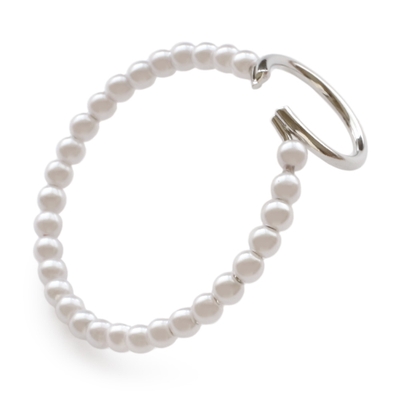 大きめのパールリングとさりげないサイズのメタルリングを合わせたデザイン。品の良い