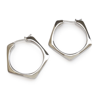 艶やかなメタルの素材感が美しい五角形リングのピアスです。