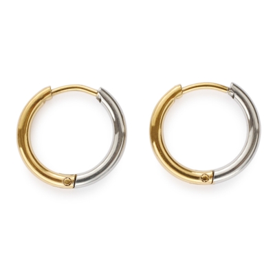 ゴールドとシルバーの2色使いで合わせたスタイリッシュに決まるフープピアスです。