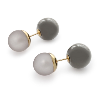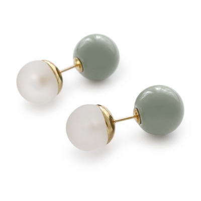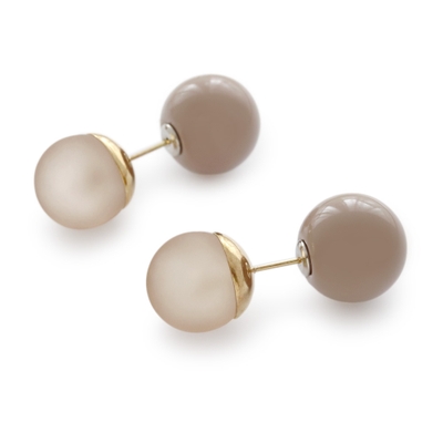 優しい色合いのすりガラス風ボールと、キャッチ側にもエナメルのような質感のボールをセットしたとってもキュートなピアスです。
