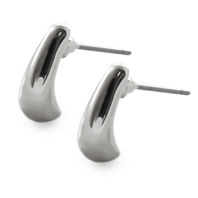 ぷっくりとした縦長なドロップ型メタルピアスとイヤリングです。