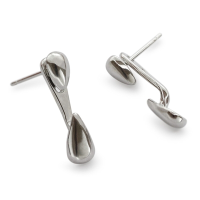 耳たぶの表と裏から挟むようにしてセットするドロップ型モチーフのピアスです。