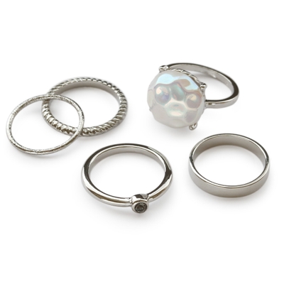オーロラのようなストーンリングやシンプルなデザインなど、5種類のマルチリングセットです。
