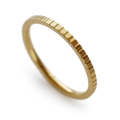 フラットな面にストライプ状の加工を施したピンキーリングで、上品なアクセントを与えてくれます。