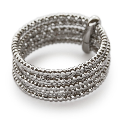 光の反射でキラキラとした表情を見せてくれるカット加工を施した5連リングです。