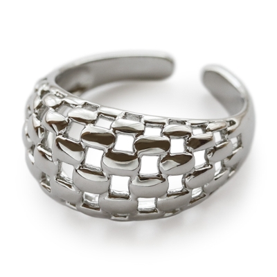 丸みのあるフォルムと格子編みが印象的なリングです。