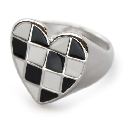 黒と白の格子柄が印象的なハートモチーフのリングです。