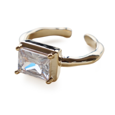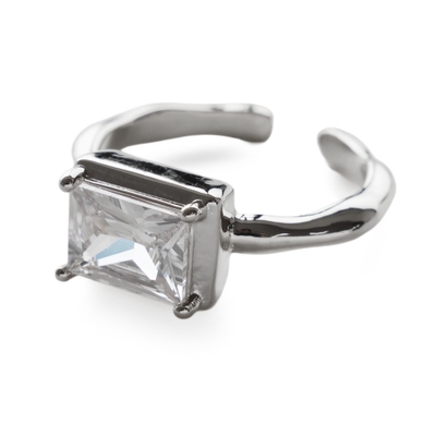 センターにセットされた存在感のあるスクエア型のキュービックジルコニアが華やかなデザイン。