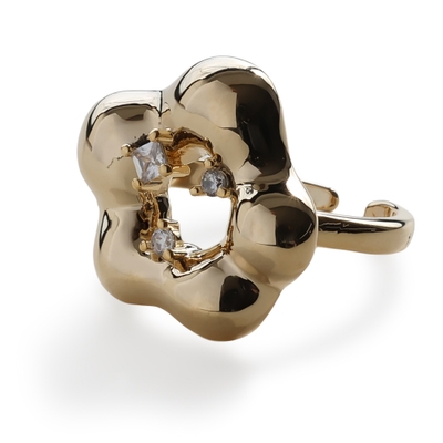 中心では大きさの異なるキュービックジルコニアが煌めく、華やかさも持ち合わせたデザイン。