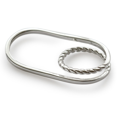 一方はツイストリングを重ねたような2連風デザインで、もう片方はすっきりとしたシンプルライン。