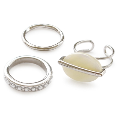 アクセントになる楕円形のシェルモチーフリングを中心に3種類のマルチリングセットです。