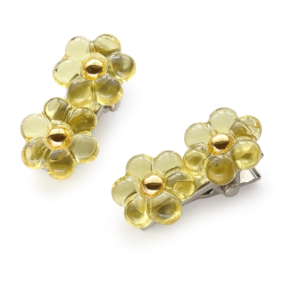 可愛らしいクリアビーズのお花をセットしたミニヘアクリップ、同色2個セットです。