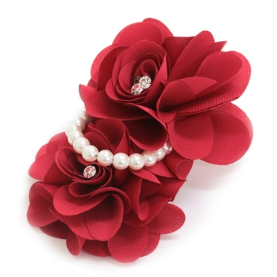 パール&ストーン付き ダブル立体フラワー コサージュ