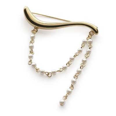 しなやかなラインと揺れるパールチェーンが調和し、装いに女性らしいニュアンスを添えるデザイン。