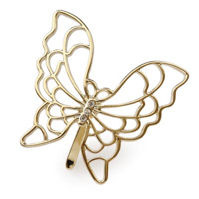 さりげなく輝くラインストーンをセットし、レースのような型抜き加工が美しいバタフライモチーフが