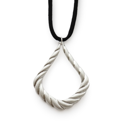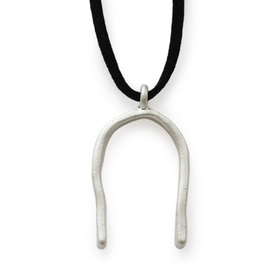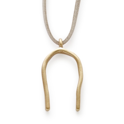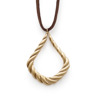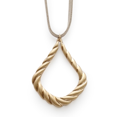 アンティーク調のメタルモチーフにスウェードの紐を合わせたロングネックレスです。