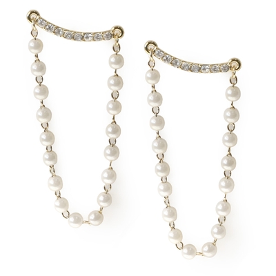 緩やかなカーブラインのピアスにパールチェーンを合わせたラグジュアリーな