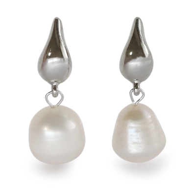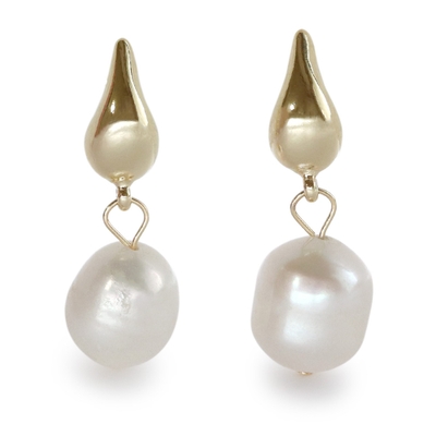 ぷっくりと立体感のあるドロップ型のメタルパーツに一つ一つ表情が異なる淡水パールを合わせたピアスです。