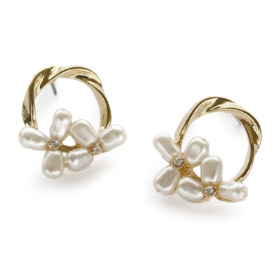 ツイストリングに可愛らしいパールのお花を合わせたピアスです。