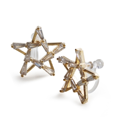 耳元で輝くスターモチーフが耳元に華やかな印象をプラスするアイテムです。