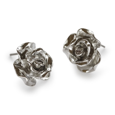 リアルな花びらのニュアンスが立体感を生むローズモチーフのピアスとイヤリングです。