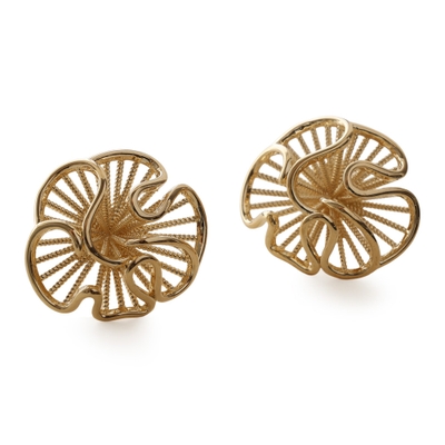 繊細な透かしデザインが大人っぽく、程よい存在感で高見えするお花が耳元に映えます。