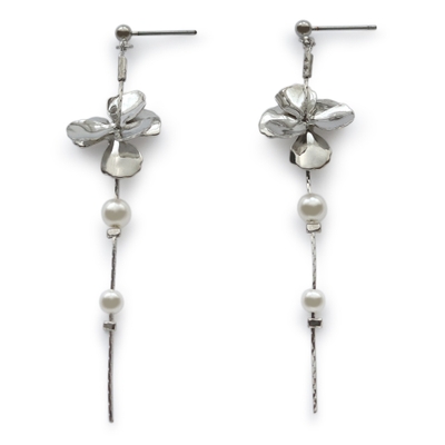 すっと伸びる縦のラインが顔まわりをスマートに見せ、動くたびにモチーフが揺れて光の反射を受けながら繊細な輝きを放ちます。