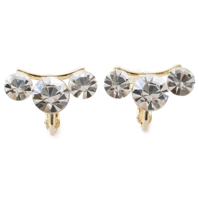 カーブに沿った大小の3連パール・ストーンが目を引くピアスとイヤリングです。