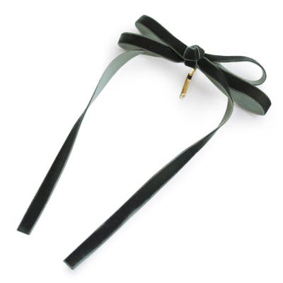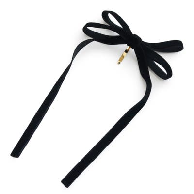 ベロア調の上品なロングリボンが揺れるレディなデザイン。