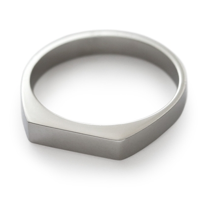 スマートに決まるスクエアデザインが印象的な細身のシグネットリング(印台リング)。