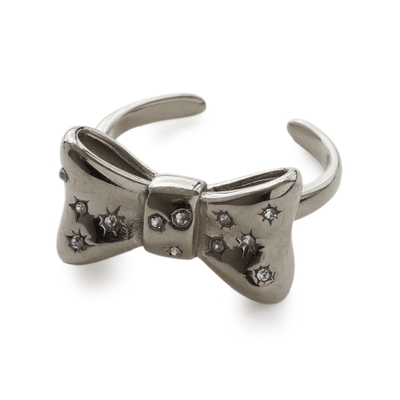 立体感のあるリボンモチーフに複数の小粒ストーンをセットしたデザイン。