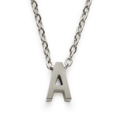 水にも強く、金属アレルギーの方でも比較的安心して使えるお肌に優しいサージカルステンレス製ののアルファベット・イニシャルネックレスです。