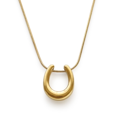 上品なメタルの質感を生かしたU字モチーフと肌馴染みの良いスネークチェーンを合わせたデザイン。