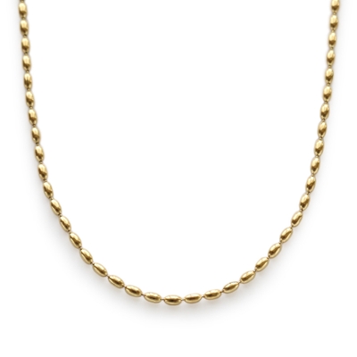 ライス型メタルチェーンのシンプルなデザインで、洗練された胸元を演出してくれます。