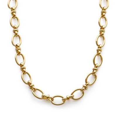 メンズライクなかっこよさと女性らしさを絶妙なバランスで楽しめるスタイリッシュな楕円リングのチェーンネックレス。