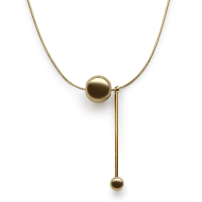 艶やかなメタルボールと、スマートなスティック状のメタルモチーフを組み合わせたモードなデザイン。