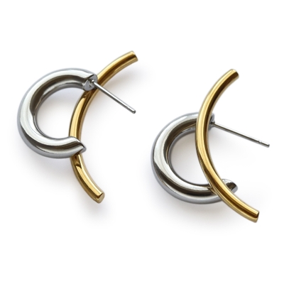 半円フープに弓なり型のメタルモチーフを組み合わせた、立体感のあるデザイン。