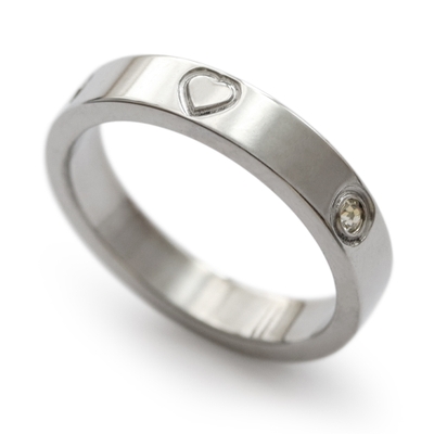 煌めくキュービックジルコニアとハートの型押しが交互に並んだ、上品な可愛らしさが印象的なデザイン。
