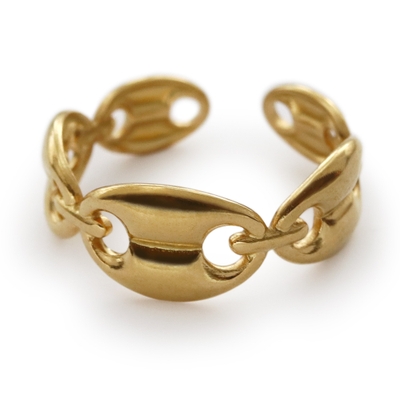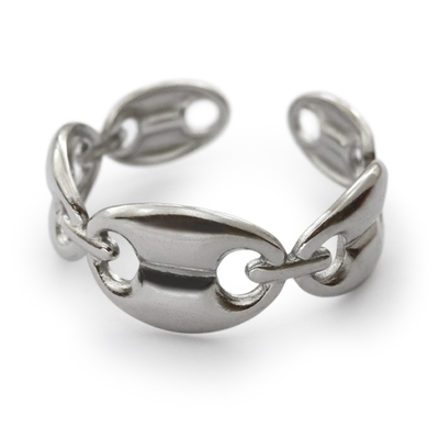 なめらかな曲面が指元にやわらかな光沢を添える楕円形のプレートモチーフを繋ぎ合わせたデザイン。