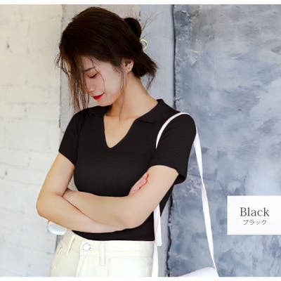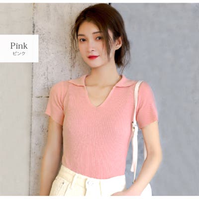 きれいめに着こなせる襟付きの半袖ニット。伸縮性のある薄手のリブニット素材で通気性も良く、伸縮性があるので着心地◎。シンプルデザインで、パンツにもスカートにも合わせやすいアイテム。