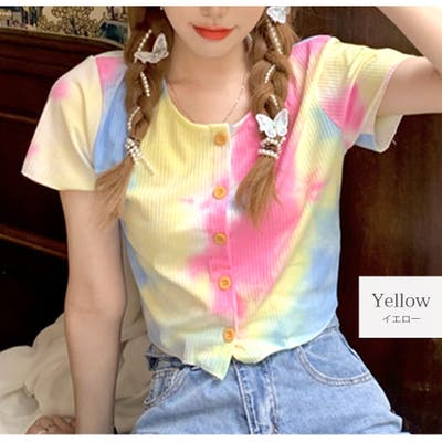 タイダイ柄が目を引くリブカットソー。ボタンは全て開閉仕様なので、お好みの開き具合に調整できます◎。ハイウエストボトムスと相性の良いショート丈デザイン。カジュアルスタイルにぴったりな1枚です♪